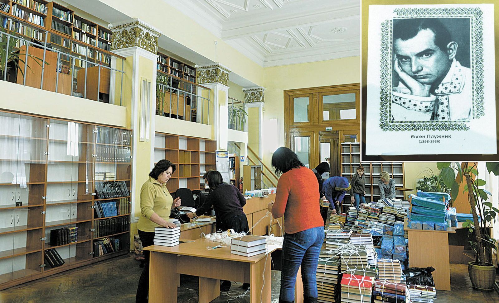 В Києві в центрі столиці на вулиці Прорізній 15, розташована центральна районна бібліотека ім. Є. Плужника — одна з найвідоміших і найпопулярніших в місті. З 1952 року бібліотека привітно відчинила двері для сотень тисяч киян та гостей міста. Щороку в її стінах обслуговується понад 5 000 користувачів. ЇЇ книжковий фонд почав формуватись після другої світової війни (1948 року) і в даний час перевищує 45 тисяч примірників, що складається з класичної та сучасної української та світової літератури, філософії, історії, мистецтва, наукових та навчальних видань, періодики а також серед них є і раритетні видання.